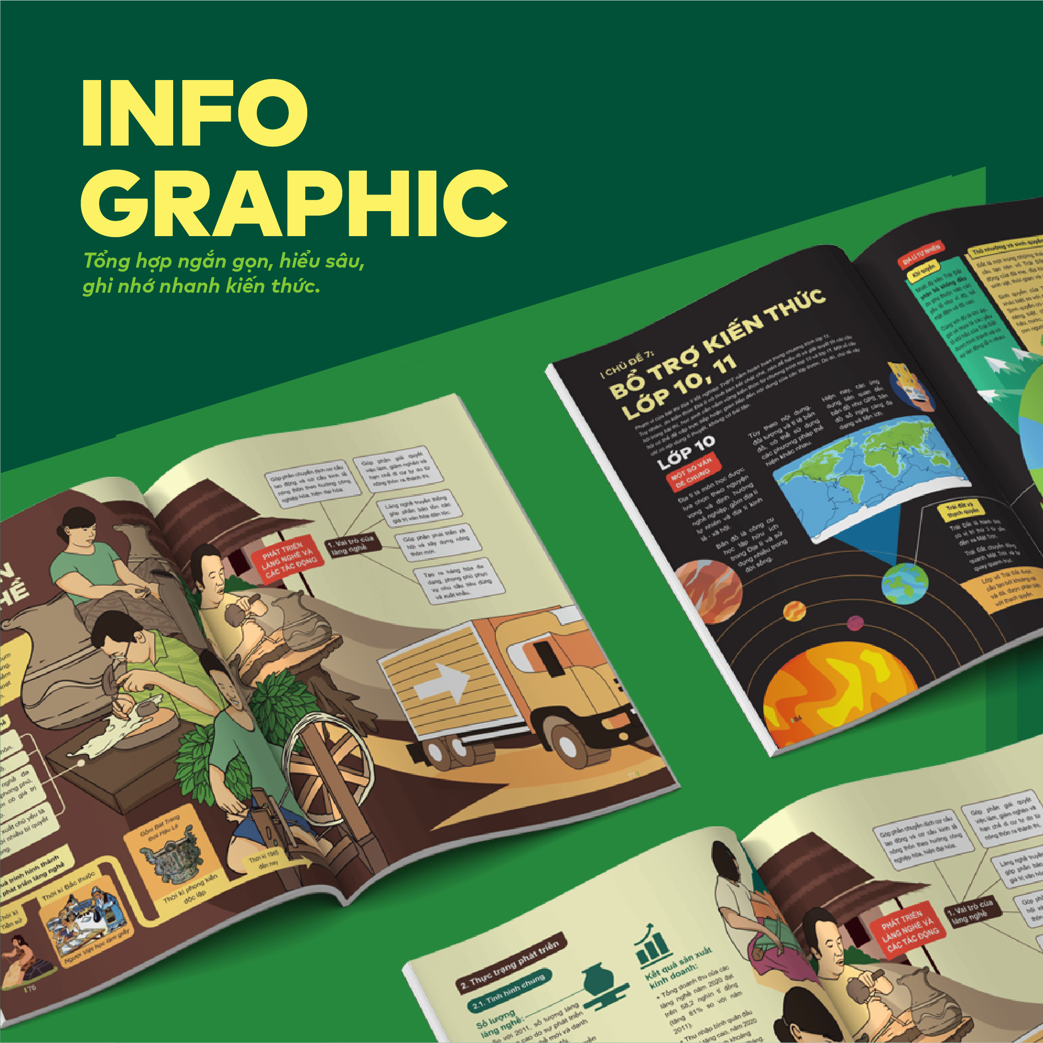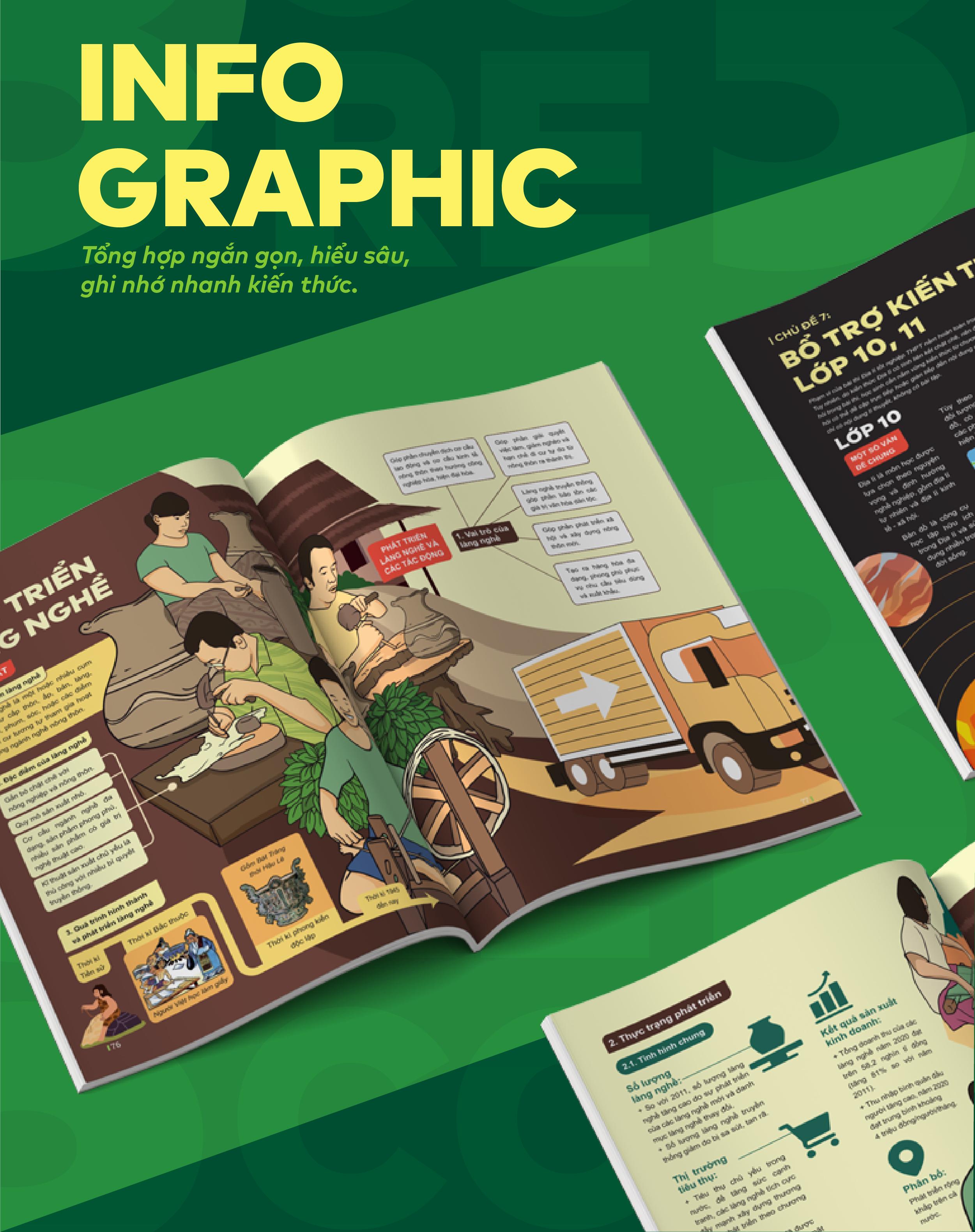 Toàn bộ lí thuyết trong sách được tổng hợp ngắn gọn lại bằng Infographic giúp bạn nâng cao cảm hứng học, dễ hiểu, kết nối kiến thức và ghi nhớ nhanh hơn.