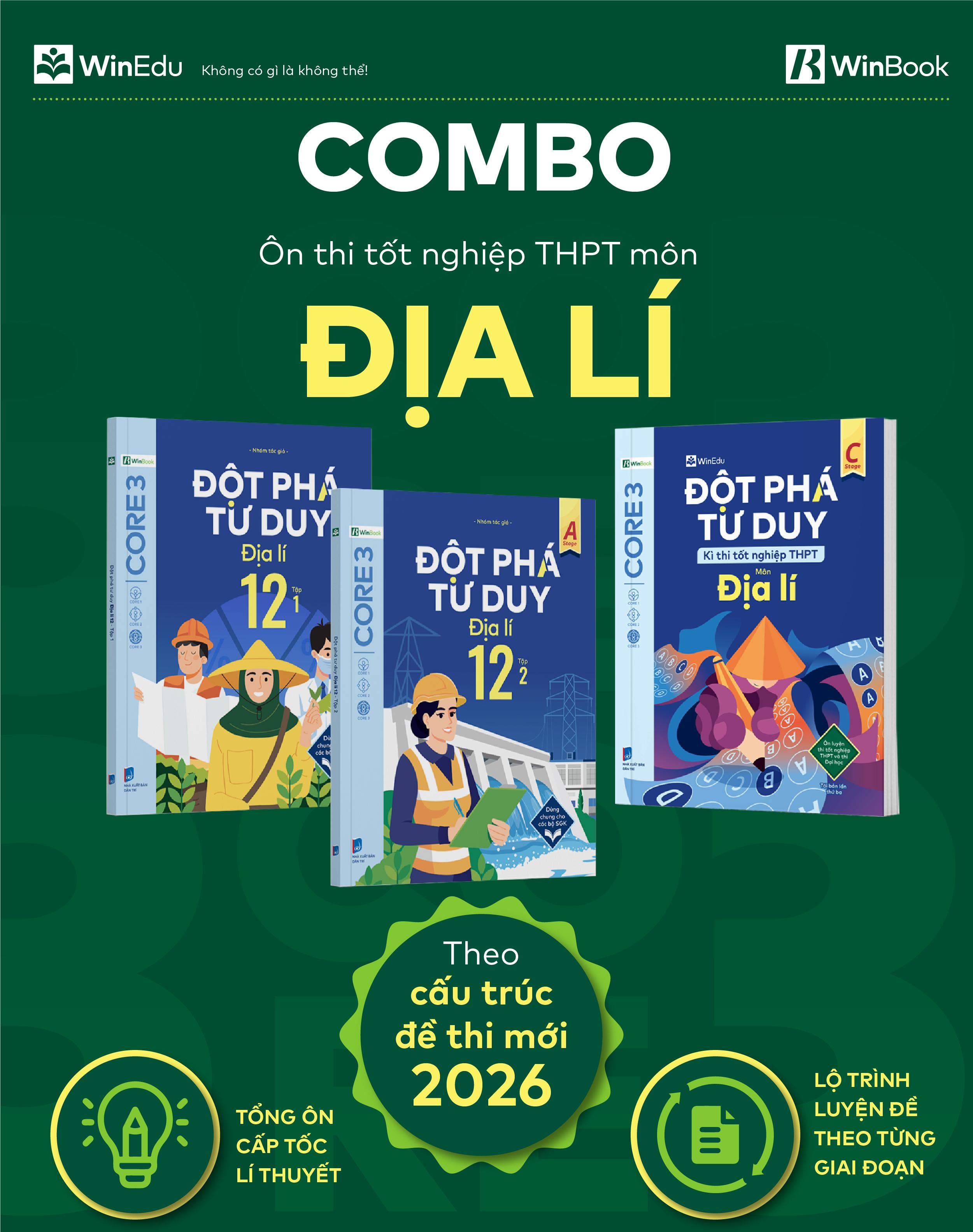 Học hai cuốn Đột phá tư duy Địa lí 12 (2 tập) trước, rồi đến cuốn Đột phá tư duy kì thi tốt nghiệp THPT môn Địa lí.