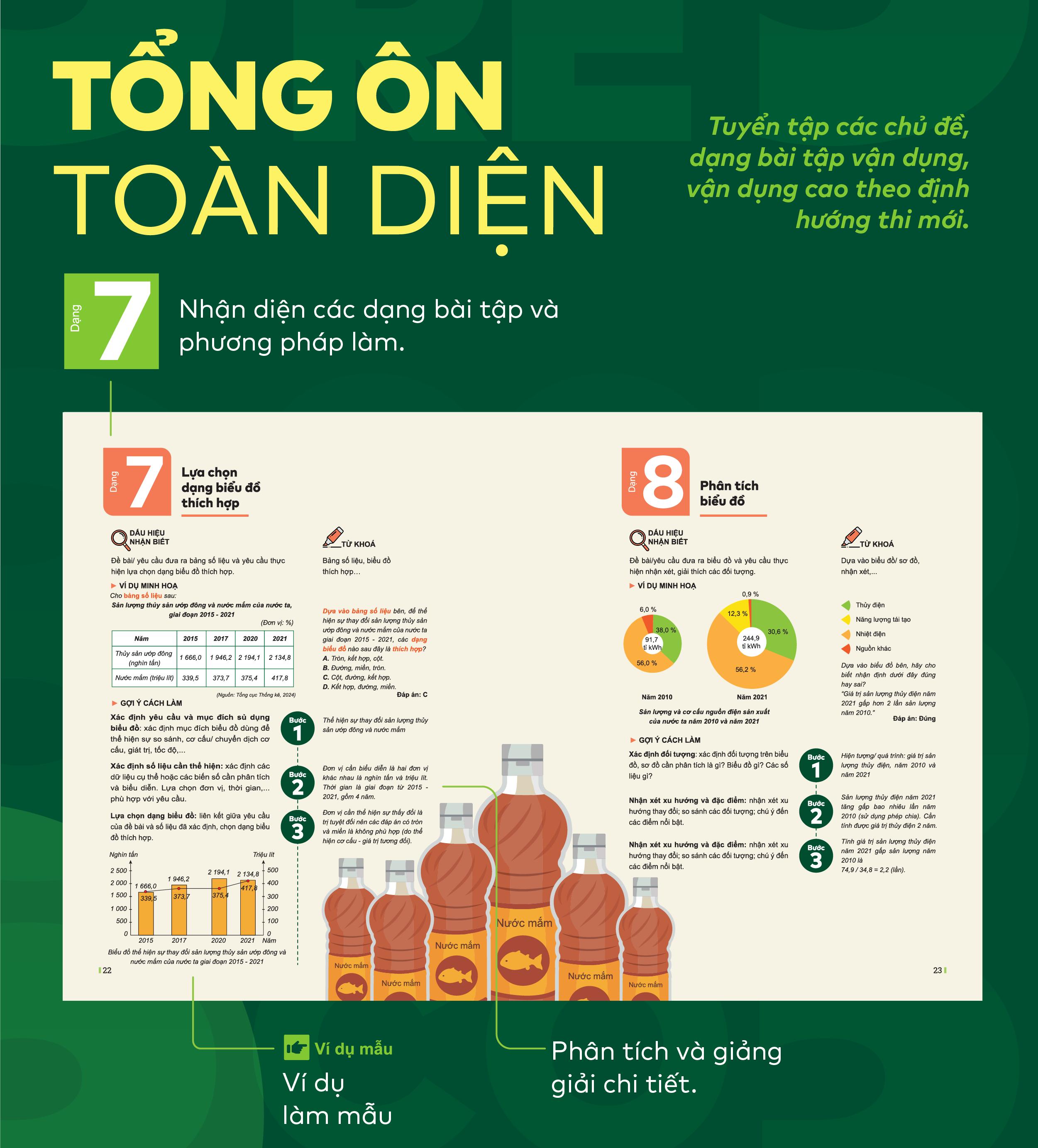 - Ví dụ mẫu, bài tập được cập nhật theo định hướng nội dung mới: tăng cường bài tập thực tiễn, các dạng bài thi đánh giá năng lực.