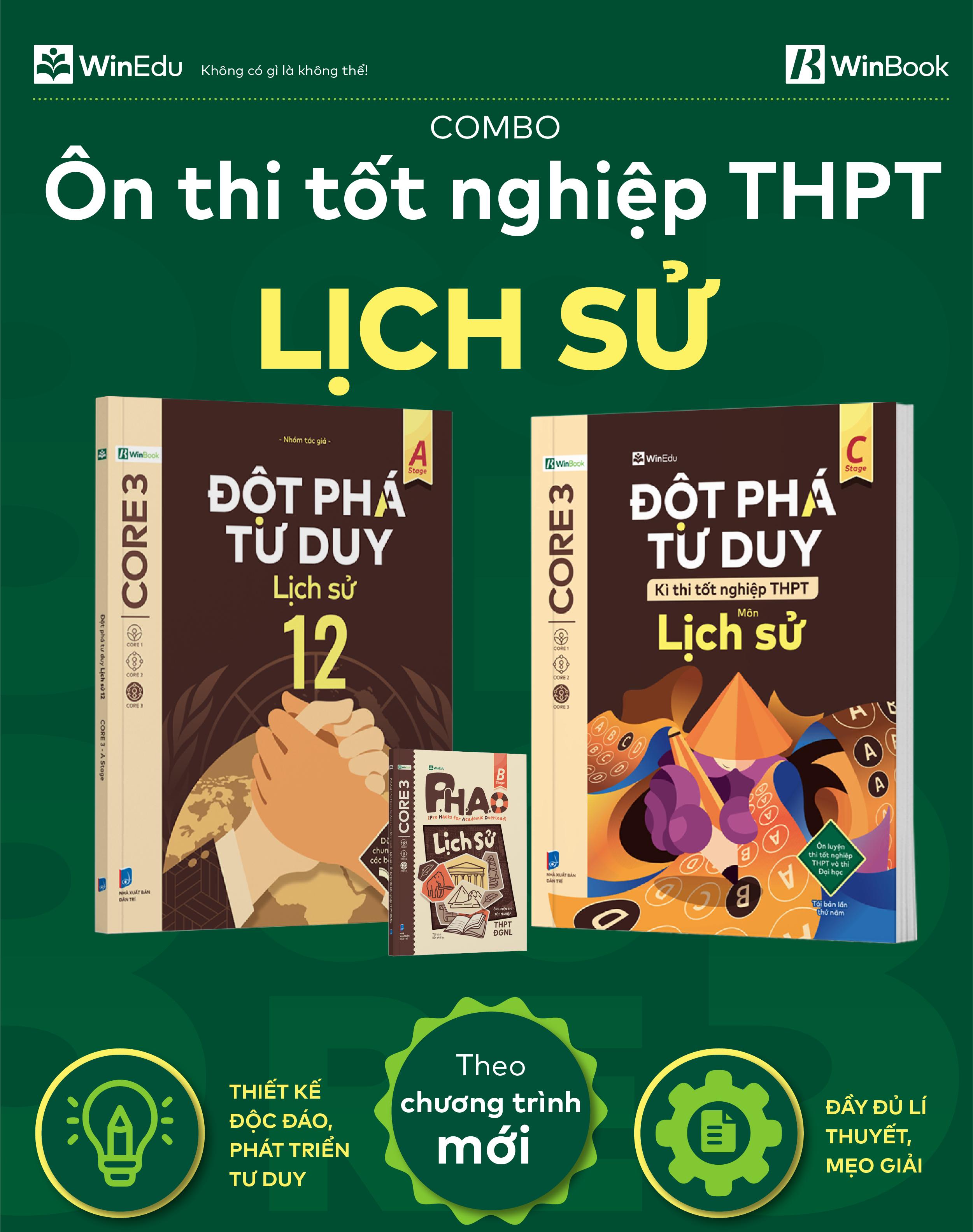 Bộ 3 cuốn sách Đột phá tư duy Lịch sử 12, P.H.A.O Lịch sử Ôn luyện thi tốt nghiệp THPT, ĐGNL, Đột phá tư duy kì thi tốt nghiệp THPT môn Lịch sử