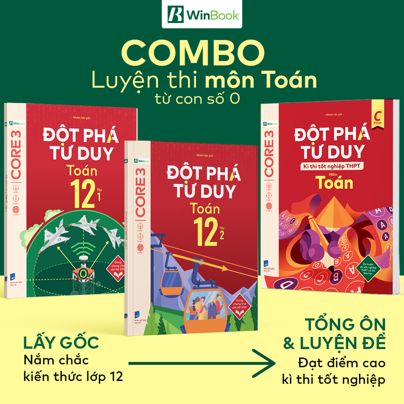 Combo luyện thi môn Toán - Bộ 3 cuốn Đột phá tư duy kì Toán 12 (2 tập), Đột phá tư duy kì thi tốt nghiệp THPT môn Toán