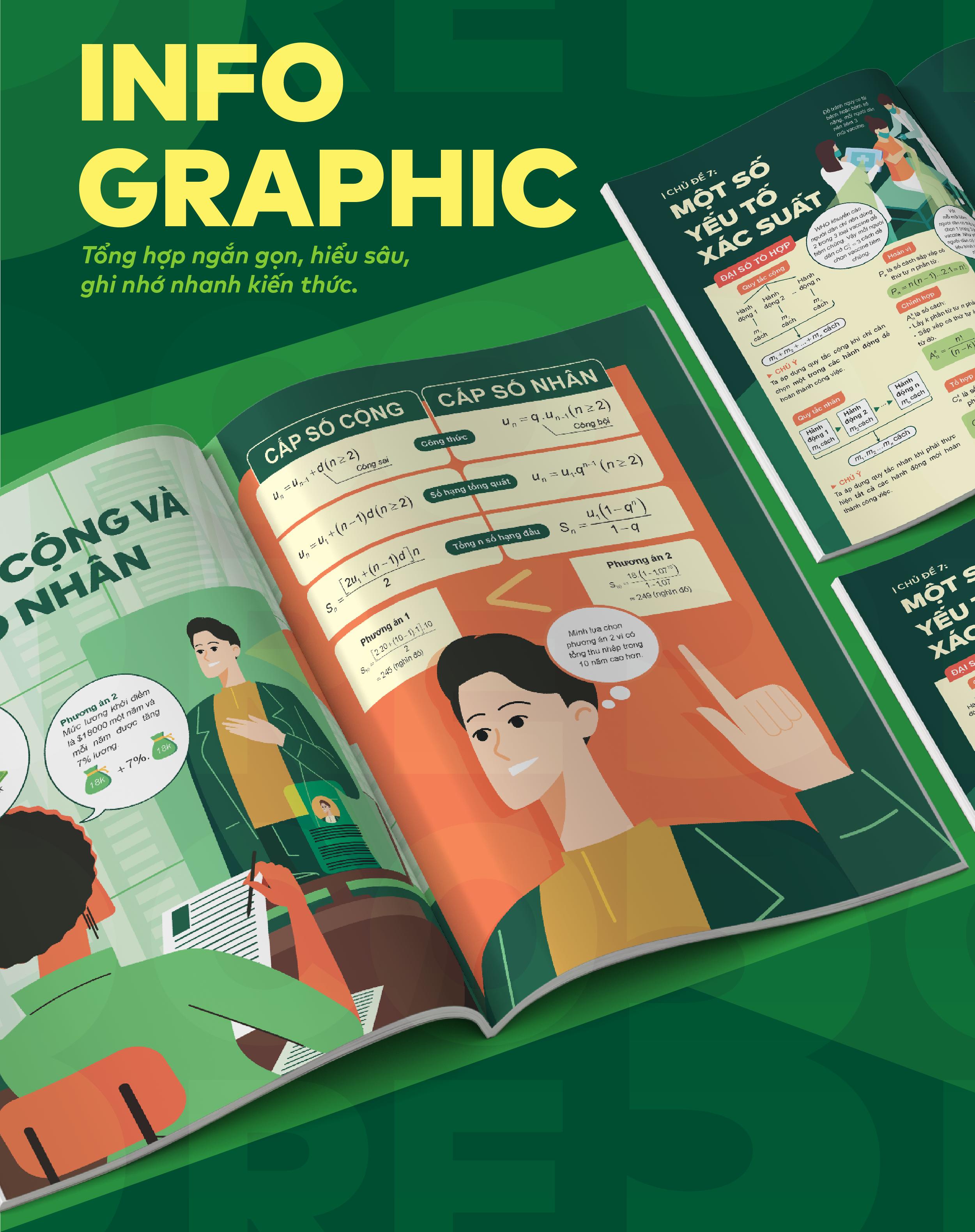 Toàn bộ lí thuyết trong sách được tổng hợp ngắn gọn lại bằng Infographic giúp bạn nâng cao cảm hứng học, dễ hiểu, kết nối kiến thức và ghi nhớ nhanh hơn.
