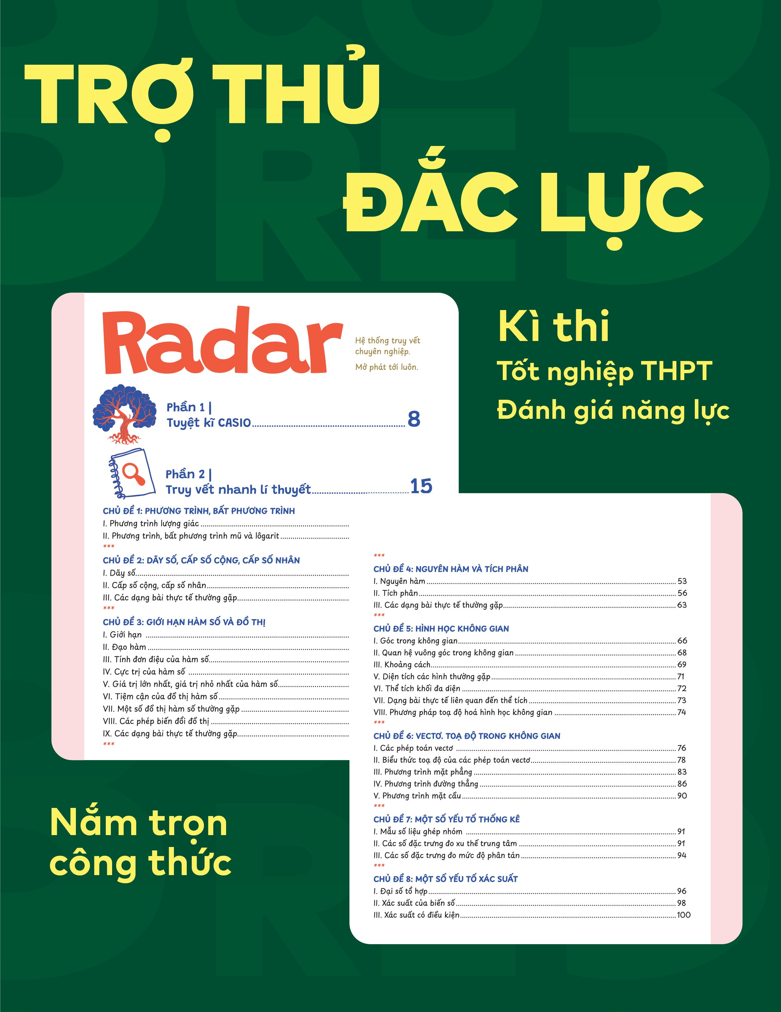 Toàn bộ hệ thống lý thuyết Toán được cô đọng và trình bày khoa học. Mỗi chuyên đề đều được tổng hợp ngắn gọn, dễ hiểu, giúp bạn dễ dàng “truy vết” kiến thức khi cần. Đây chính là “bản đồ kho báu” để bạn định hướng rõ ràng trong quá trình ôn tập.