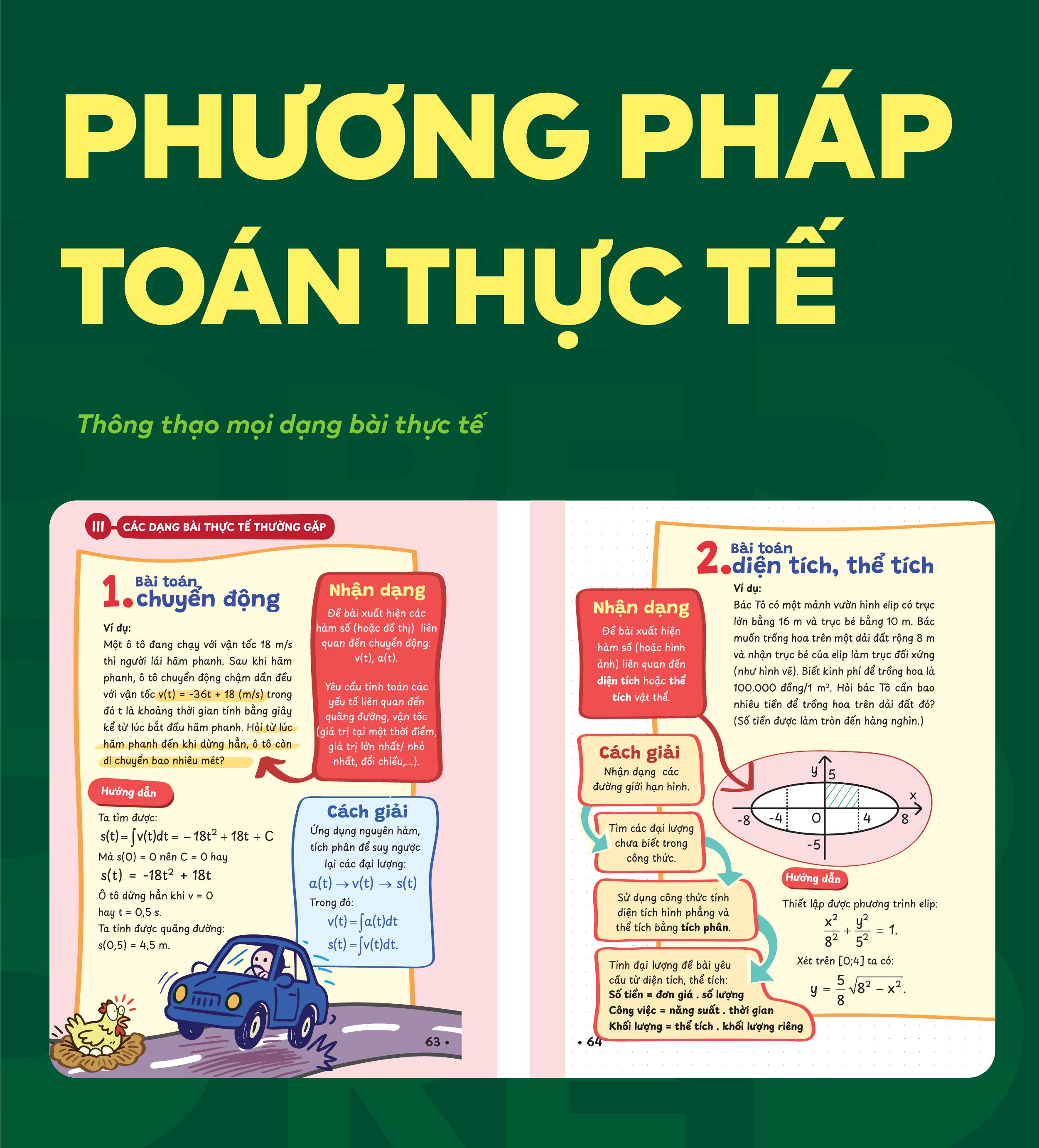 Ngoài lý thuyết và công thức, sách còn có các phương pháp làm dạng toán thực tế. Phần này không chỉ giúp bạn nhận diện, hiểu sâu bản chất bài toán thực tế mà còn dễ dàng vận dụng khi gặp các câu hỏi ứng dụng trong đề thi ĐGNL và tốt nghiệp THPT.