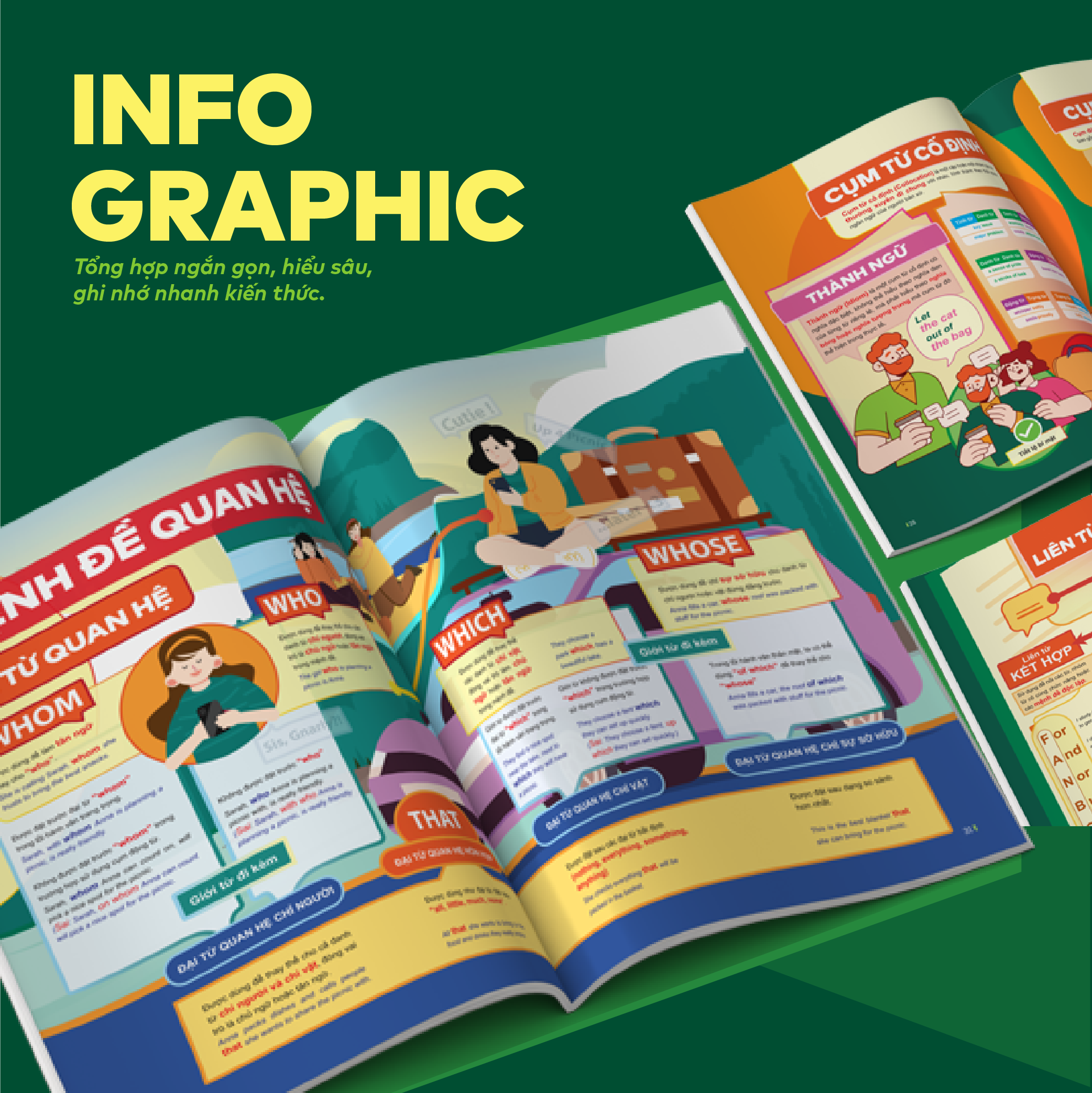 Toàn bộ lí thuyết trong sách được tổng hợp ngắn gọn lại bằng Infographic giúp bạn nâng cao cảm hứng học, dễ hiểu, kết nối kiến thức và ghi nhớ nhanh hơn.