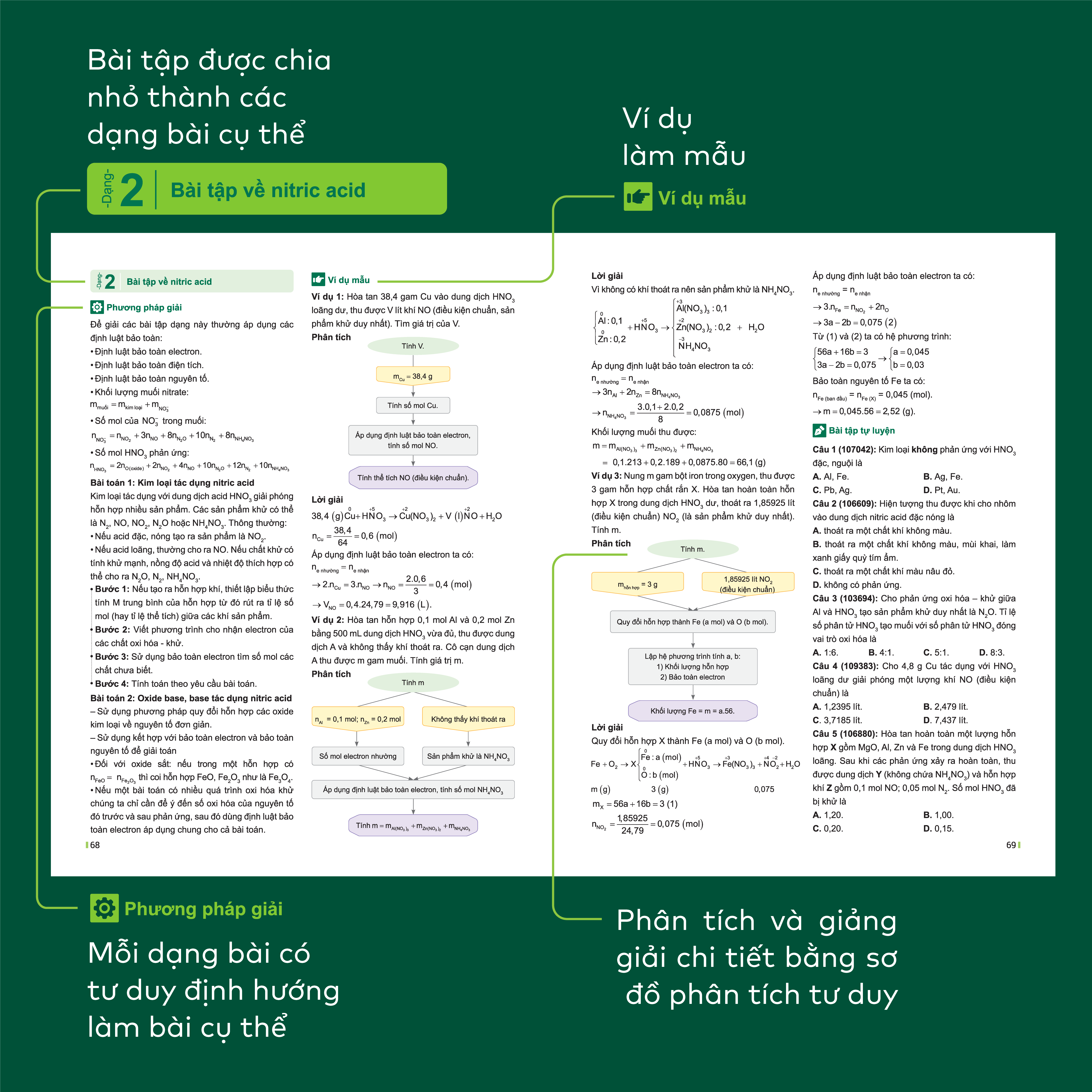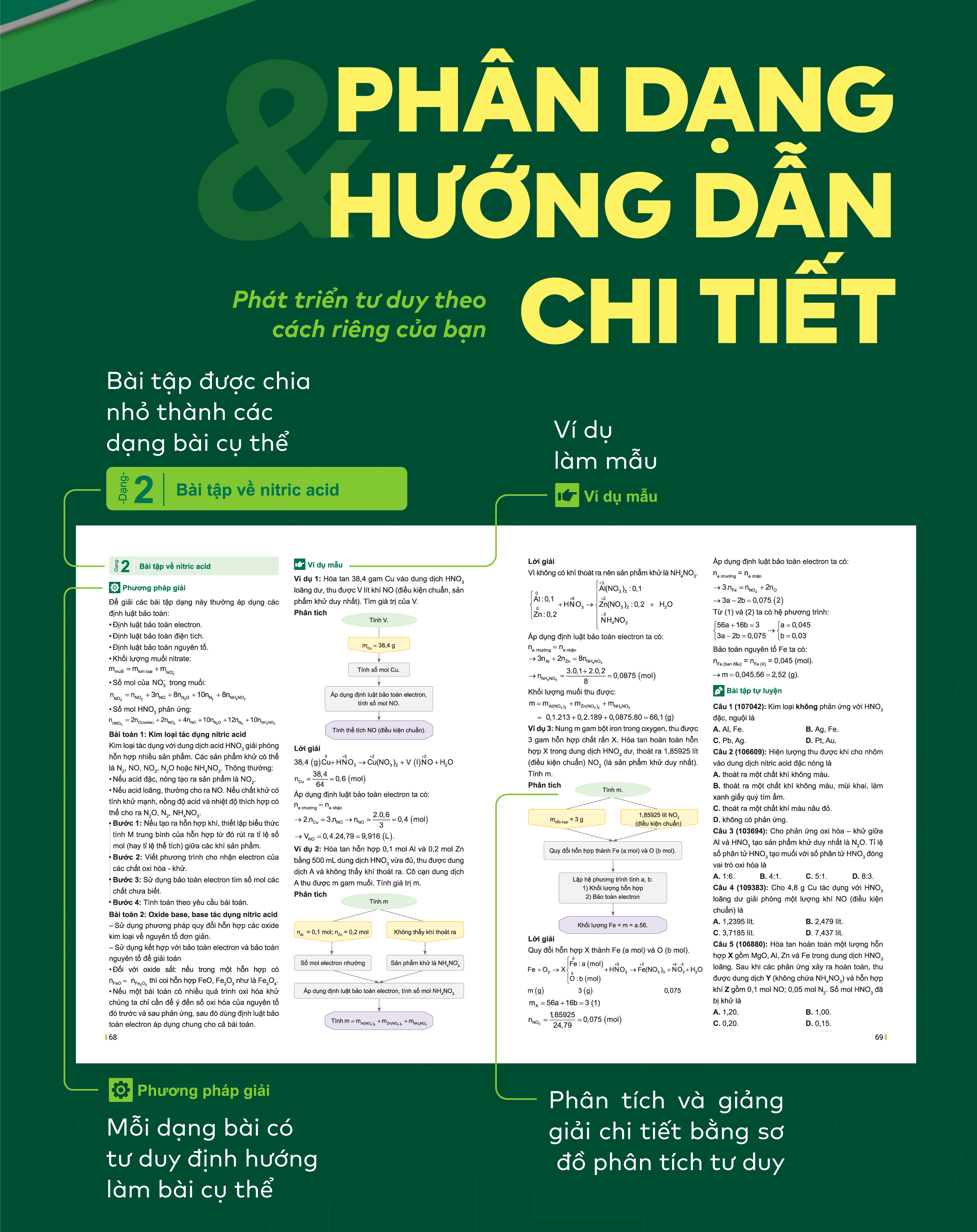 Bài tập trong sách được chia thành các dạng để giúp bạn nhận dạng các kiểu bài. Mỗi dạng bài có phương pháp làm cụ thể. Kèm theo đó là hệ thống các ví dụ mẫu, các sơ đồ phân tích tư duy giúp bạn nắm vững được cách làm và phát triển tư duy theo cách của riêng bạn để vận dụng giải quyết được tất cả các bài tập khác.
