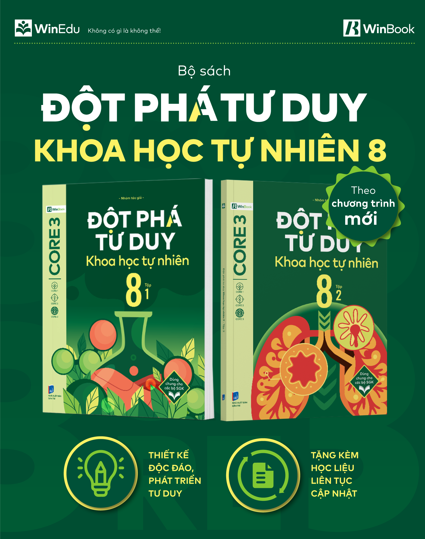 Đột phá tư duy Khoa học tự nhiên 8 không chỉ là một bộ sách mà còn là tấm vé đưa bạn vào một hành trình khám phá tri thức đầy màu sắc. Mỗi trang sách là một bức tranh sinh động, mỗi bài học là một bước tiến trên con đường chinh phục đỉnh cao học vấn.