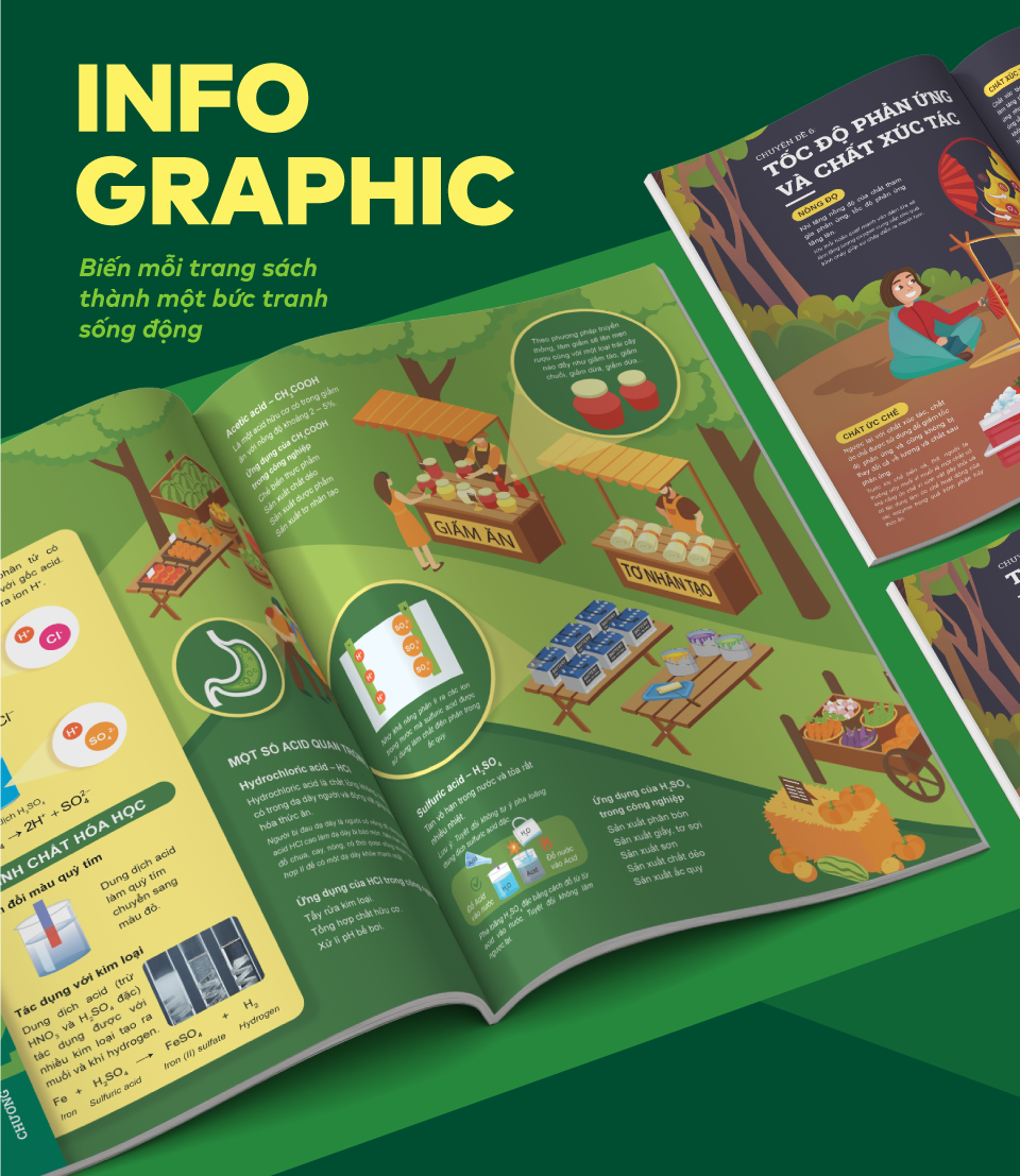 Mỗi phần lí thuyết khô khan trở nên dễ hiểu và thú vị hơn nhờ các infographic sinh động. Bạn sẽ cảm nhận được sự khác biệt ngay từ lần đầu mở sách, khi kiến thức hiện ra một cách trực quan, dễ nhớ và đầy màu sắc.
