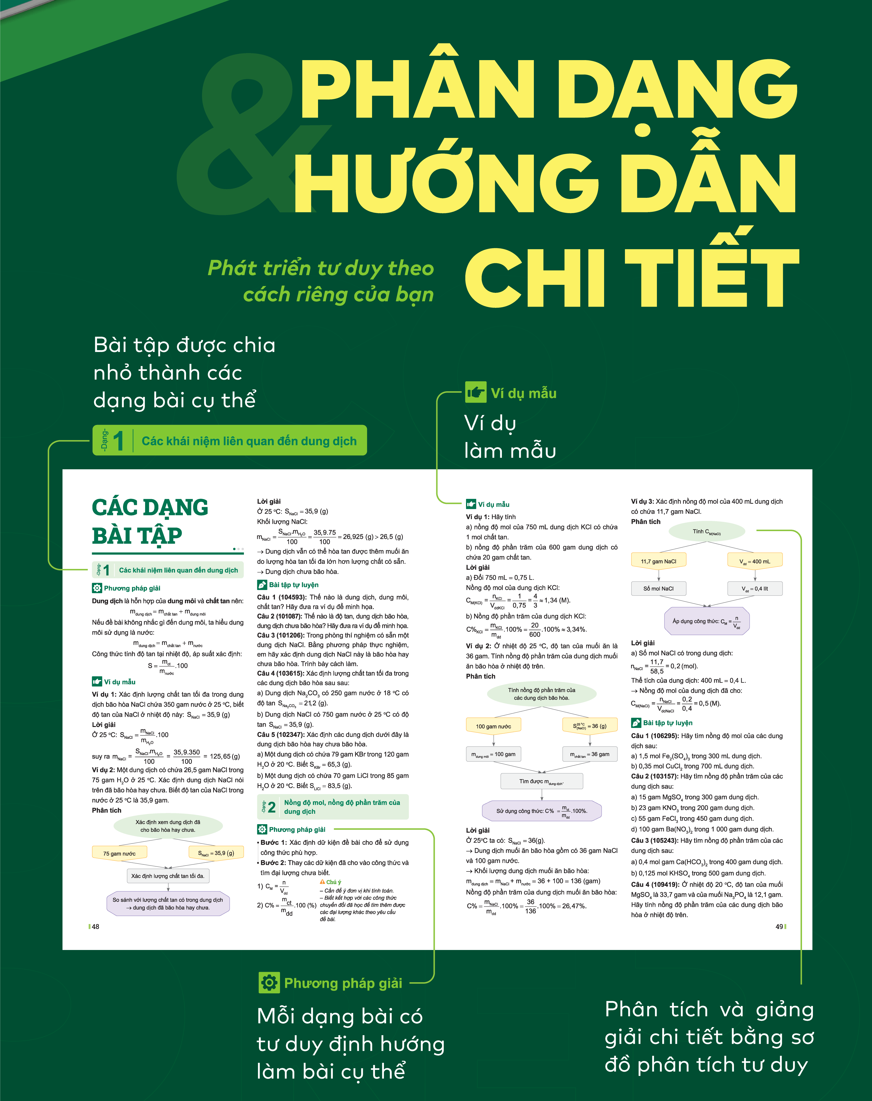 Bài tập trong sách được chia thành các dạng để giúp bạn nhận dạng các kiểu bài. Mỗi dạng bài có phương pháp làm cụ thể. Kèm theo đó là hệ thống các ví dụ mẫu, các sơ đồ phân tích tư duy giúp bạn nắm vững được cách làm và phát triển tư duy theo cách của riêng bạn để vận dụng giải quyết được tất cả các bài tập khác.