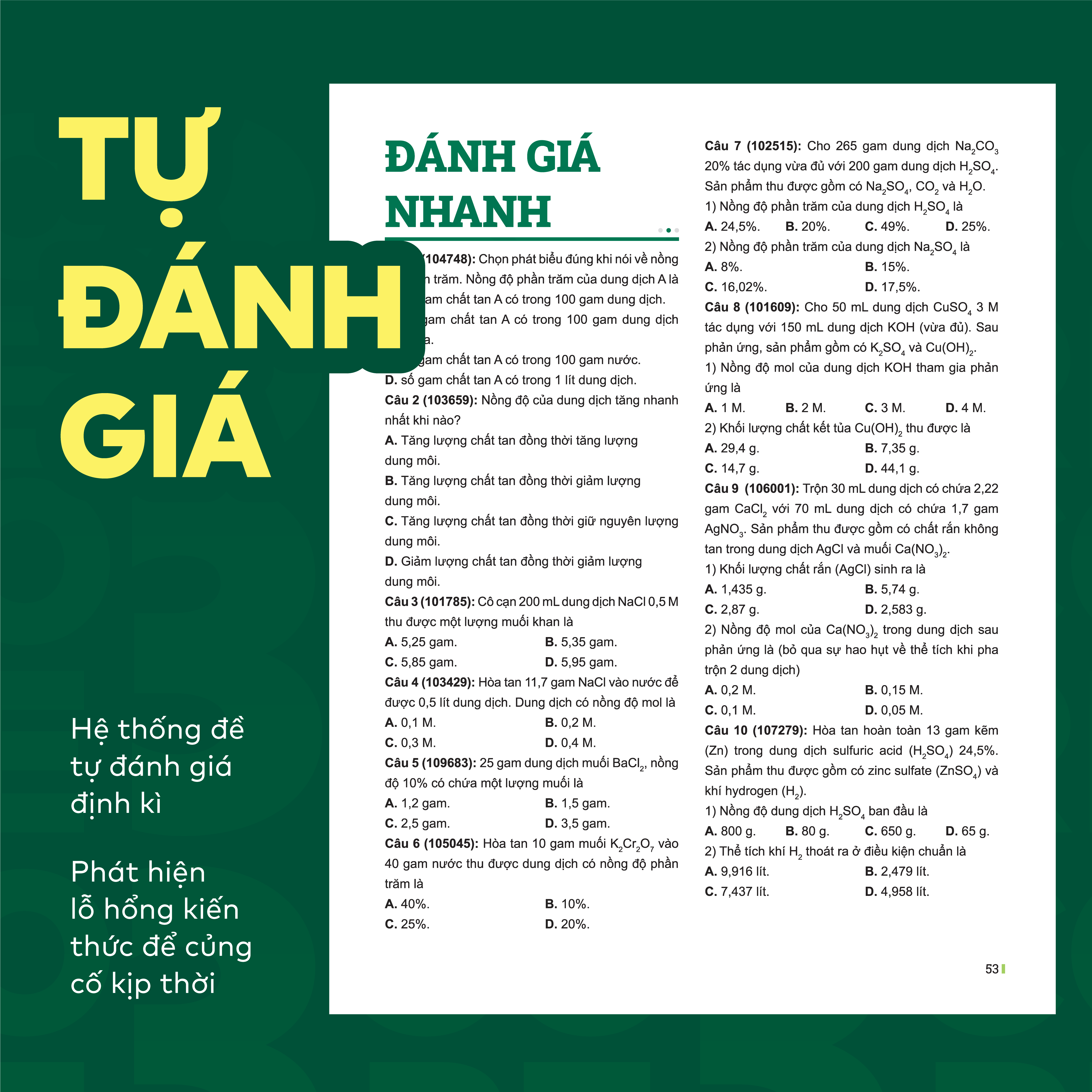 Sau mỗi đơn vị kiến thức, sách có hệ thống đề tự đánh giá để bạn ôn luyện, củng cố, phát hiện lỗ hổng kiến thức để có kế hoạch bồi dưỡng kịp thời.