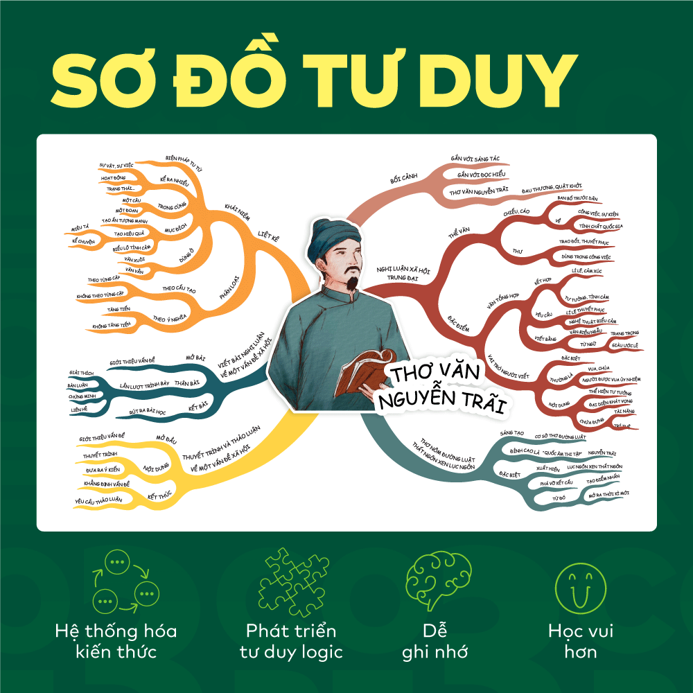 Sơ đồ tư duy trong sách không chỉ giúp hệ thống hóa kiến thức Ngữ văn lớp 9 mà còn kích thích khả năng tư duy sáng tạo. Bạn sẽ dễ dàng nắm bắt và kết nối các kiến thức một cách rõ ràng và mạch lạc.