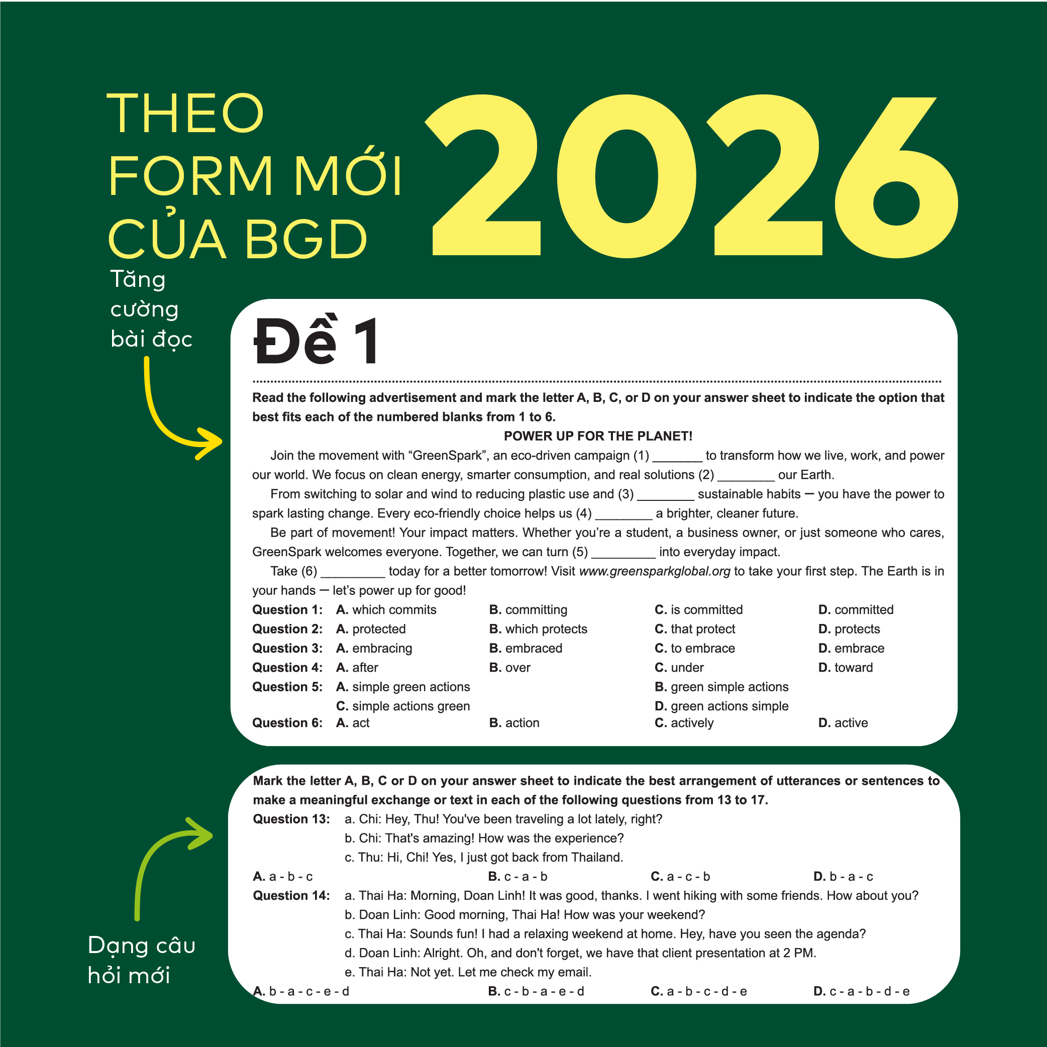 - Các chủ đề trong sách bám sát theo chương trình mới, định hướng thi mới với 2 hình thức câu hỏi trắc nghiệm: