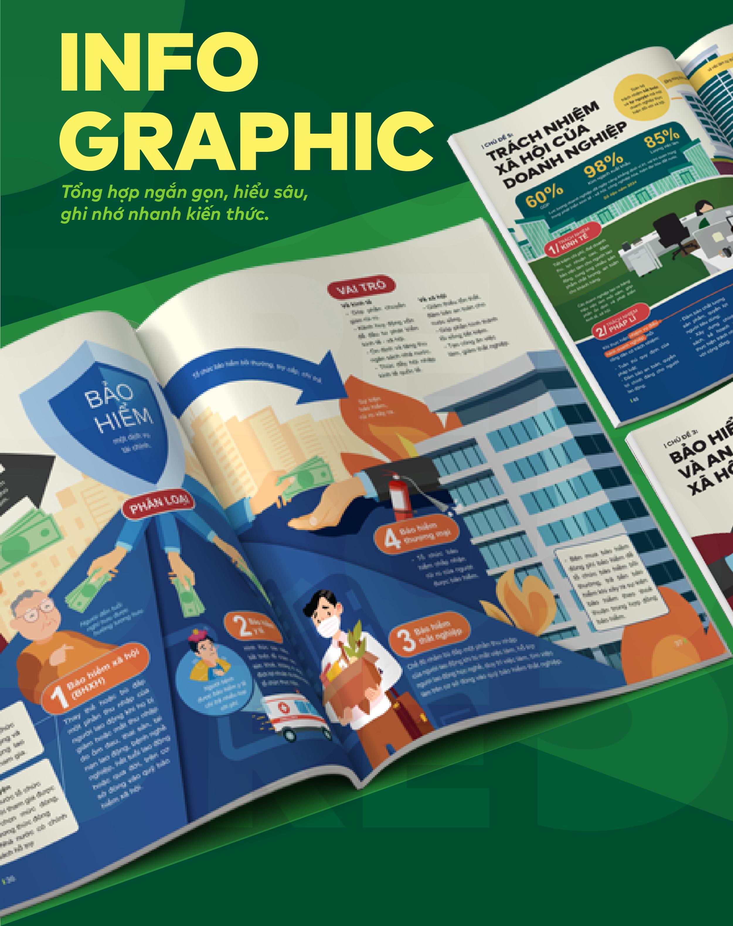 Toàn bộ lí thuyết trong sách được tổng hợp ngắn gọn lại bằng Infographic giúp bạn nâng cao cảm hứng học, dễ hiểu, kết nối kiến thức và ghi nhớ nhanh hơn.