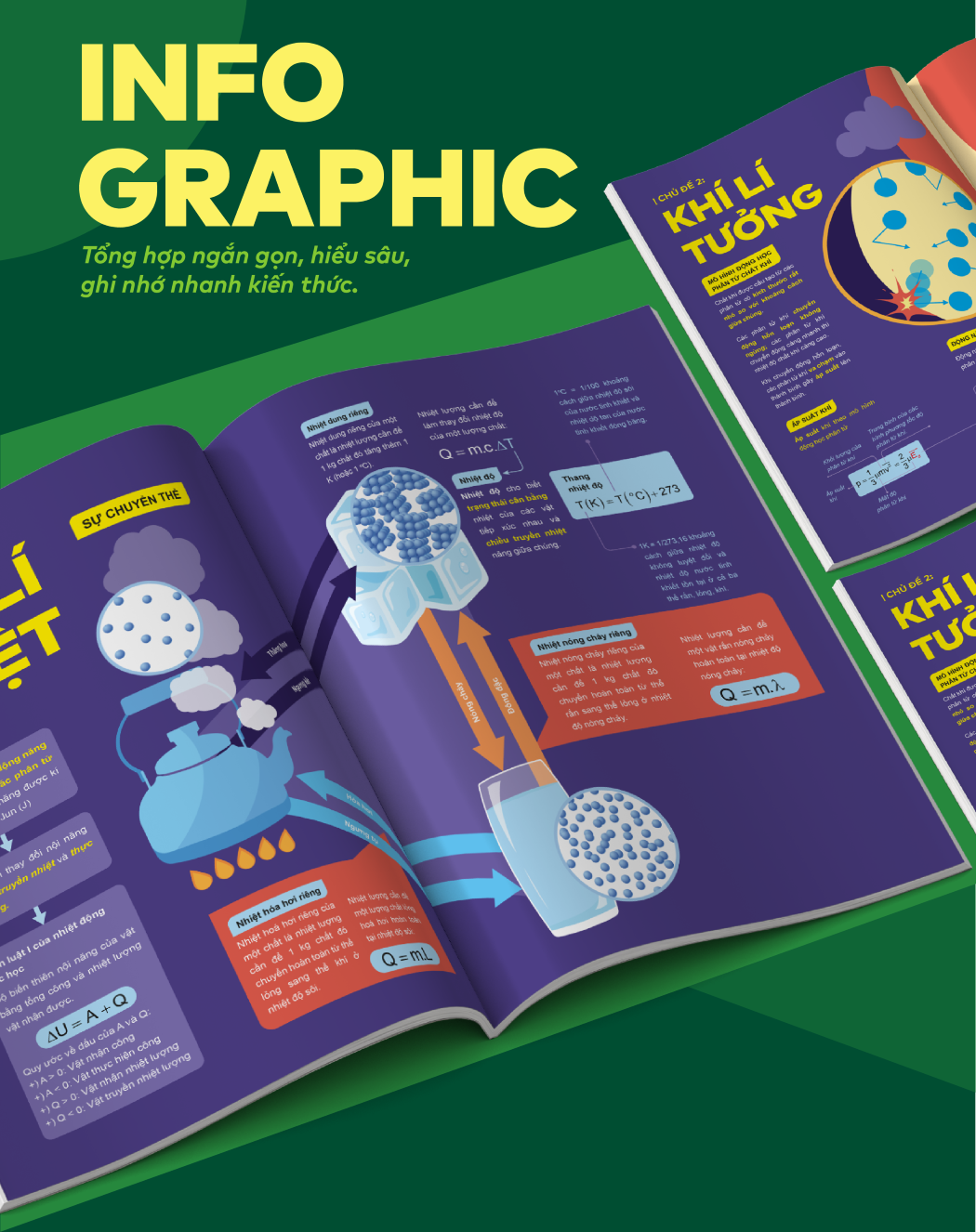 Toàn bộ lí thuyết trong sách được tổng hợp ngắn gọn lại bằng Infographic giúp bạn nâng cao cảm hứng học, dễ hiểu, kết nối kiến thức và ghi nhớ nhanh hơn.