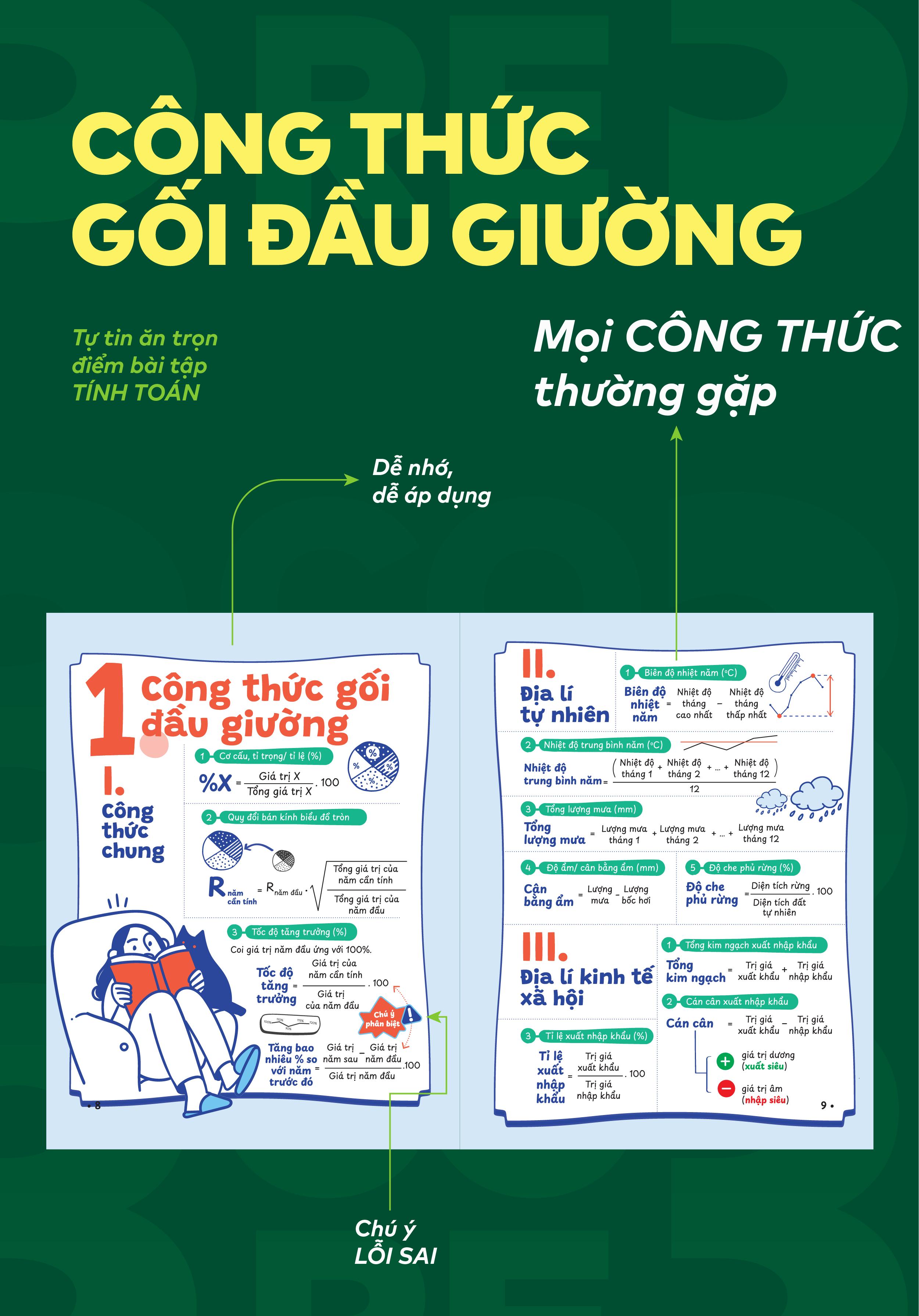 Ngay đầu sách các bạn sẽ được sưu tầm bộ công thức gối đầu giường giúp bạn giải nhanh, khoanh đúng, tránh mất điểm oan.