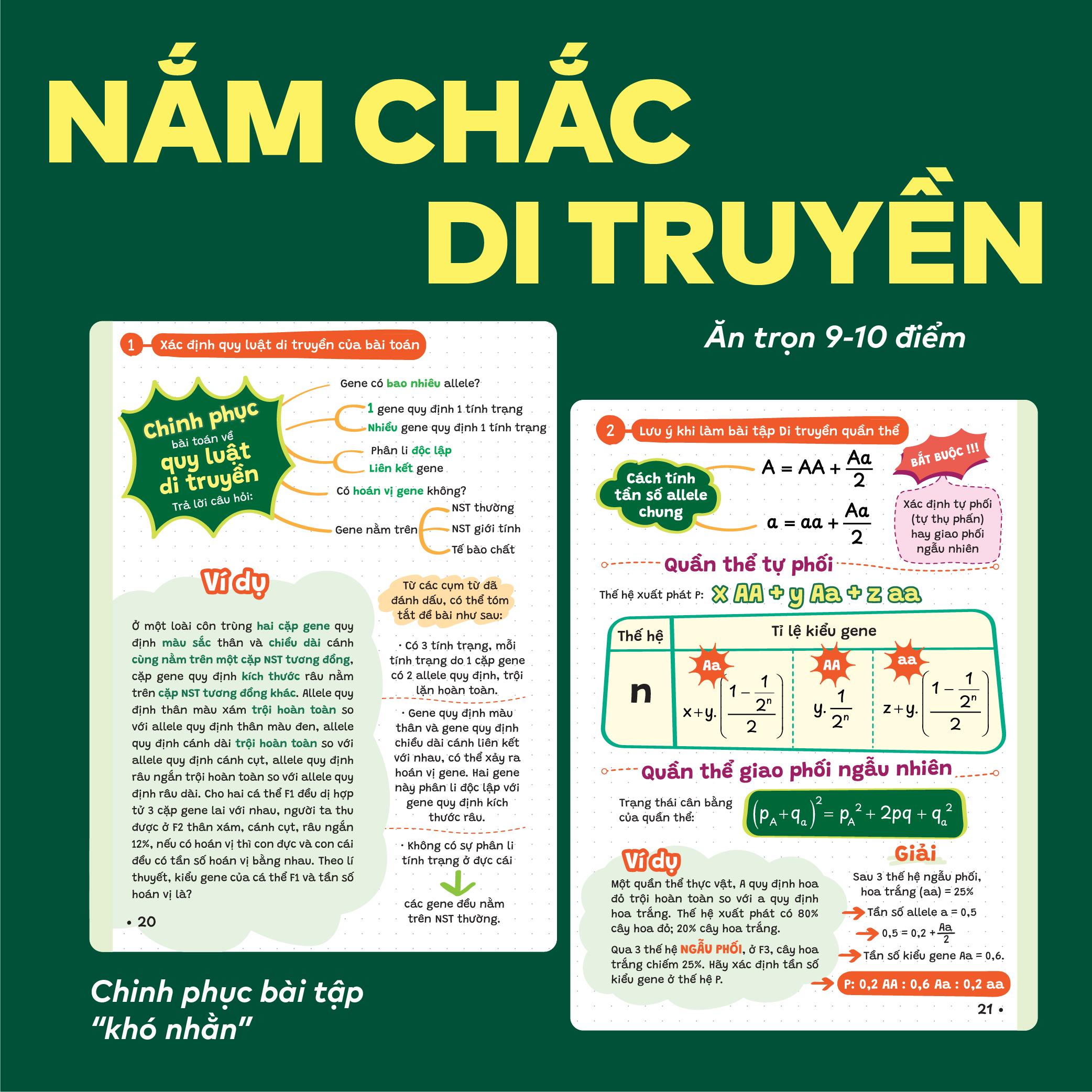 Với 3 dạng bài chính: Xác định quy luật di truyền; Di truyền quần thể; Bài tập phả hệ. Sách có tổng hợp các lưu ý, các mẹo phân tích, phương pháp làm bài để đơn giản hóa các bài phức tạp, tiết kiệm tối ưu thời gian và công sức làm bài.