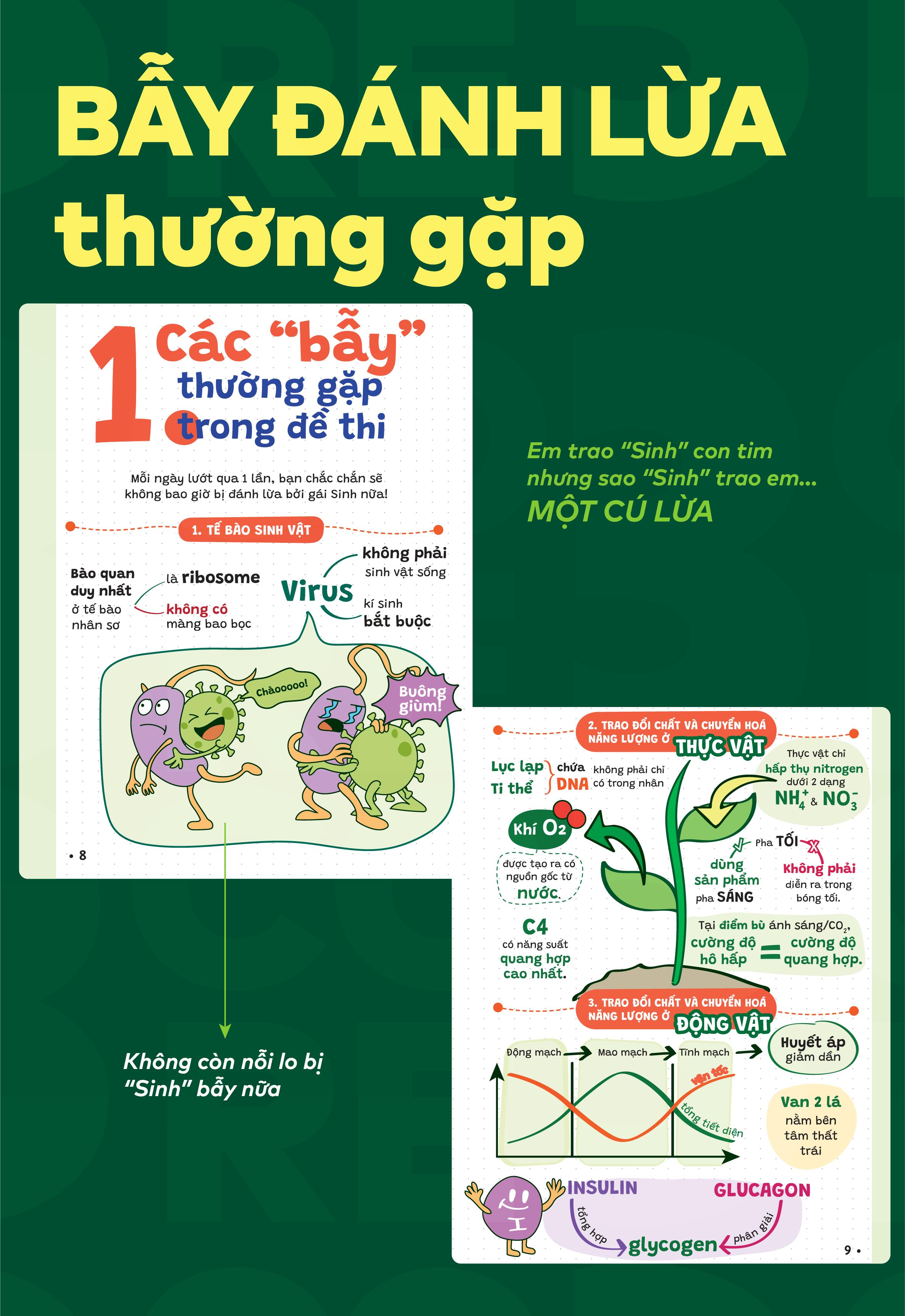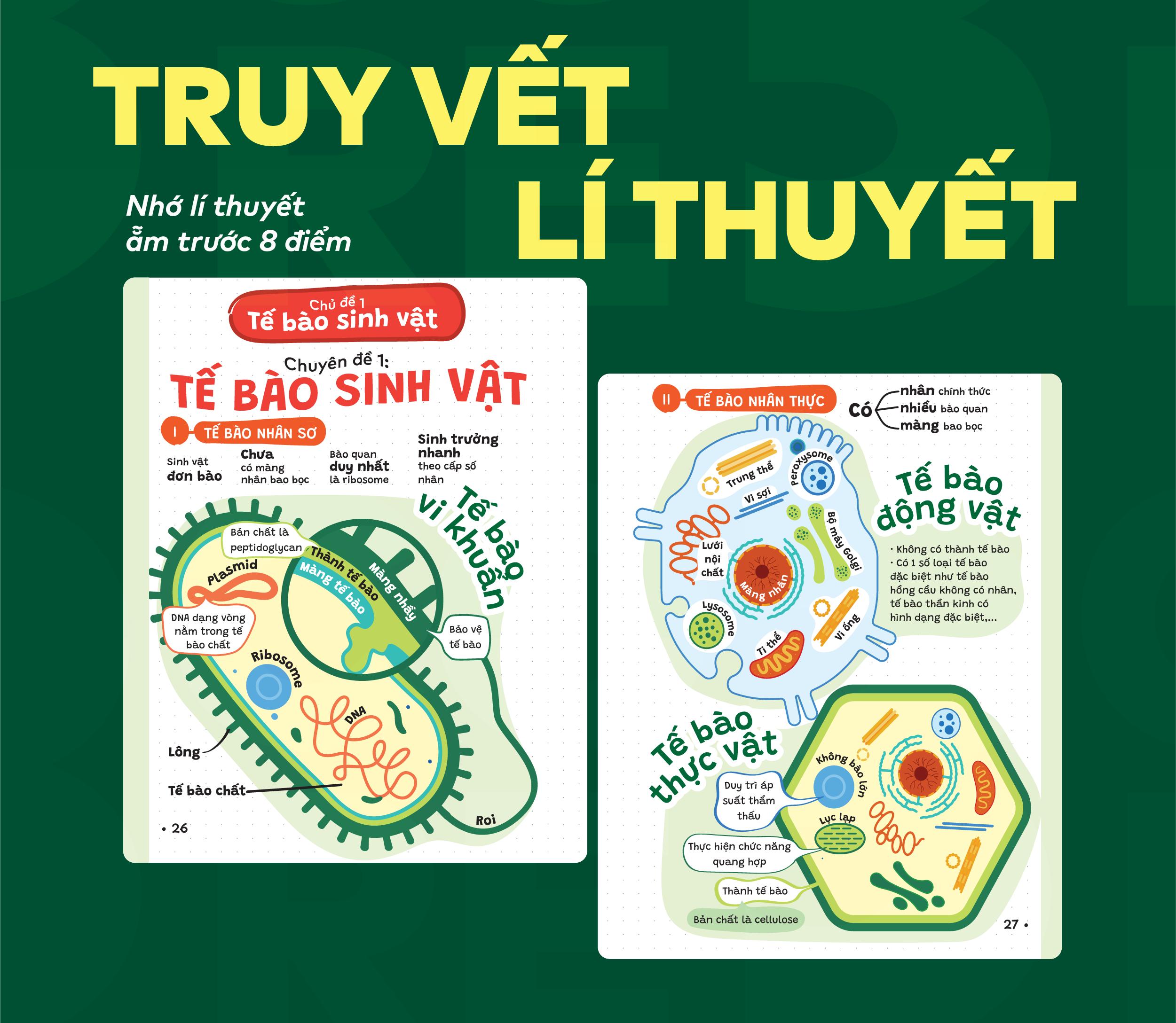 Môn Sinh có cực kì nhiều các phần lý thuyết, các chủ đề khác nhau, toàn bộ lý thuyết được thiết kế bằng infographic, sơ đồ trực quan. Nội dung cô đọng, màu sắc dễ nhớ, bố cục rõ ràng, giúp các bạn học nhẹ nhàng hơn, đỡ áp lực hơn, mà vẫn nắm chắc kiến thức.